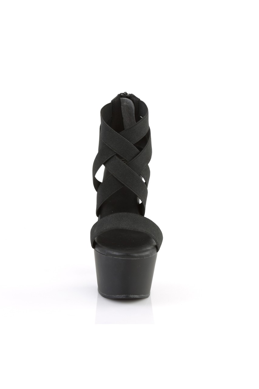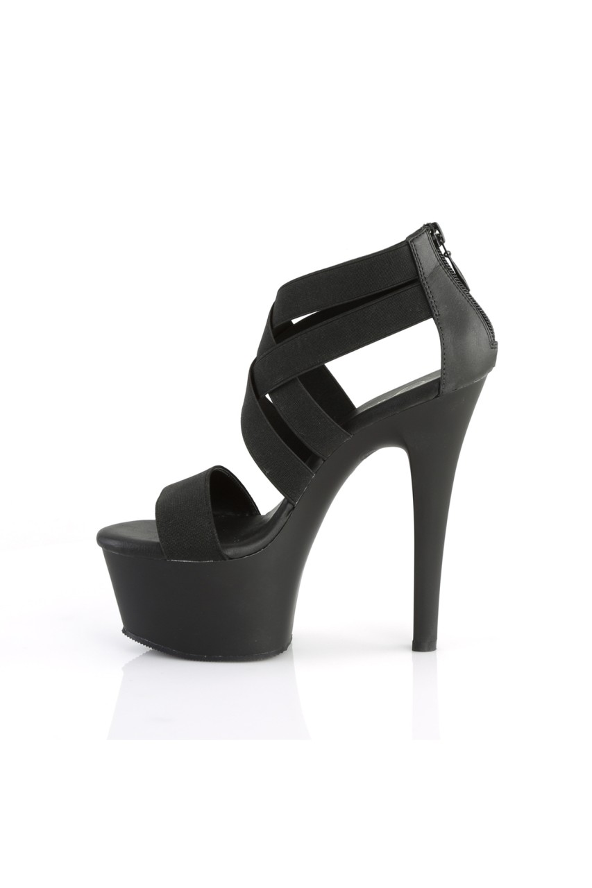 6″” (152mm) Heel, 2 1/4″” (57mm) Platform Double Criss Cross Close Back Sandal, Back Zip Closur
