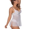 From the Exposed by Magic Silk collection, this style includes: a baby doll featuring flowy, hip length mesh and lace cups, adjustable shoulder straps with black sliders, a strappy keyhole design in the back, and a matching panty with a crotchless cutout and soft lace all around to hug your hips. Soft lace and stretchy mesh in a mesmerizing shade of black. Hand Wash Cold. No Bleach. Dry Flat. 90% Nylon, 10% Spandex