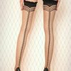 An extravagantly sexy pair of hold ups in Nero (Black) / Skin which are the perfect addition to any outfit. Running down the length of the leg is a continuous black triangle pattern with small little dots which follow all the way down to the last seam at the toes. At the top of the hold ups is a daring bold line design and to finish the hold ups there is an elegant lace trim band sits at the top with one individual silicone strip on the inside. This product is from the Fashion range by Ballerina and is presented in luxury embossed packaging with a sleeve to present the product. The skin colour part of the hold ups is 20 denier and the pattern is 60 denier.