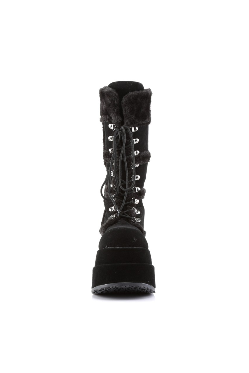 4 1/2″” (11.4cm) Stacked Platform Calf Boot with Faux Fur Lining and Detail
