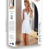 A sexy yet feminine white dress with a deep neckline that is decorated with a charming little diamante heart. On the sides there are fancy cuts that expose the body. A matching thong is included. This item arrives packaged in an organza bag and Beauty Night box.