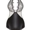 Elegant body made from soft, stretch wet-look fabric and adorned with beautiful lace. The impressively crafted upper part wonderfully highlights the neckline and is further embellished with a sparkly buckle. A fabulous halter neck design, Delilah Teddy is presented in elegant packaging featuring a picture of the product and marked with the Beauty Night Fashion logo hologram. Includes a bag-pouch for storage or laundry.