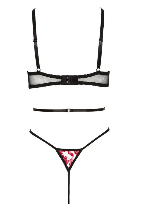 An extremely elegant but also extremely sensual teddy. Evangelina wonderfully emphasizes the charms of the female body. Ruby floral embroidery is beautifully displayed on delicate tulle. Underwired cups beautifully lift the bust. The back boldly reveals the back. A decorative bow with dazzling diamante adds charm to it. Adjustable straps and back closure by hook & eye with three adjustable. Set in the elegant packaging with the picture presenting the product marked with the hologram from the logo Beauty Night Fashion. Bag-pouch for storage or laundry included.