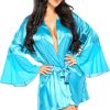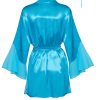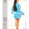 The Marlene Robe in turquoise epitomises luxury and elegance, perfect for any woman who cherishes comfort and style. Crafted from the finest satin, this robe ensures both supreme comfort and exceptional chic. Key Features: Colour: Turquoise, exuding freshness and energy. Material: Luxurious satin, soft and gentle on the skin. Sleeves: Wide, flared sleeves that add a touch of elegance. Trim: Lace inserts on the sides, infusing romantic charm. Belt: Satin belt to tie, accentuating the waist. Set: Includes a matching thong. Packaging: Presented in an elegant box with a photo, ideal for gifting. The Marlene Peignoir Turquoise Robe is perfect for women who want to feel special every day or on special occasions. It also makes an exquisite gift.