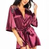 Step into luxury with the Summer peignoir burgundy robe, a stunning blend of elegance and comfort that makes every moment at home feel special. Whether it’s a romantic evening or a cosy night in, this satin robe brings a touch of glam to your everyday. Key Features: Luxurious satin fabric: Soft, silky satin gently wraps around your body, offering the ultimate in comfort and sophistication. Chic burgundy design: The deep burgundy colour, paired with delicate lace accents on the shoulders, adds a touch of charm and elegance to this burgundy robe. Adjustable satin belt: Easily tailor the fit with the satin belt that highlights your waist for a flattering look. Versatile style: Whether you’re enjoying a relaxing evening at home or preparing for a special night, this satin peignoir suits every occasion. Complete set: Includes matching thong for a coordinated, head-to-toe look. Wide sleeves: Loose, wide sleeves give the robe an airy, stylish feel. Elegant detailing: Every element is crafted with care, ensuring durability and a luxurious finish. Exclusive packaging: Comes in a beautiful package with a product photo, making it an ideal gift for a loved one—or a treat for yourself! The Summer peignoir burgundy satin robe is the perfect choice for any woman who wants to feel both elegant and comfortable. Whether you’re giving it as a luxury gift or adding it to your own wardrobe, this robe makes every moment feel special!