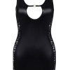 Turn heads with this alluring wetlook black mini dress featuring intricate lace panels on the sides. The sleek, glossy finish accentuates your curves, while the side lace panels add a touch of elegance and intrigue. Perfect for making a bold statement, this mini dress arrives packaged in a Beauty Night box, making it an ideal gift or a special treat for yourself.
