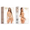 Introducing a timeless lingerie set in a sophisticated nude colour, featuring a three piece set. The bra includes lightly padded cups and adjustable straps for a perfect fit. Both the bra and garter belt are adorned with delicate bows, adding a touch of elegance. The set includes thong panties with a creative design that looks beautiful. A floral lace motif ties all the elements together harmoniously. Elegantly packaged with a photo showcasing the product, this set is perfect for gifting or personal indulgence.