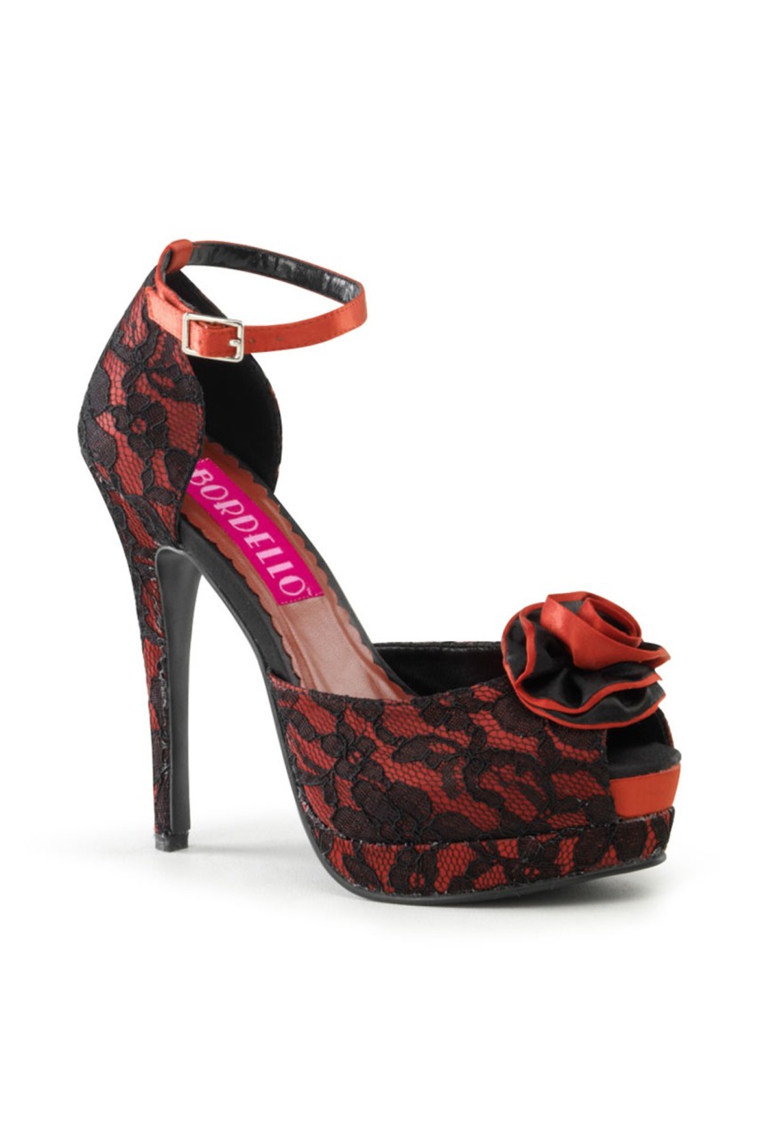 5 1/4″” (13.3cm) Heel, 3/4″” (1.9cm) Platform Peep Toe Pump Featuring Rose Detail on Vamp