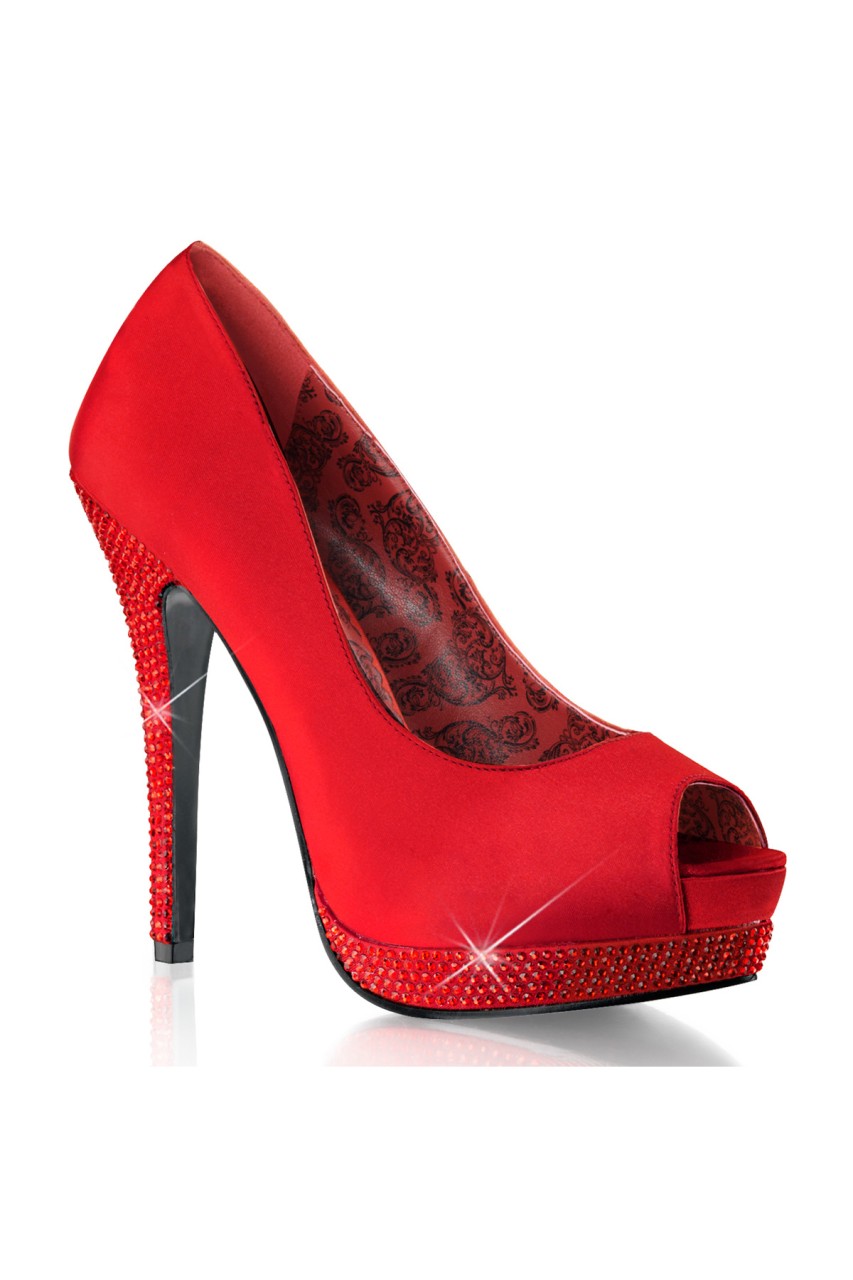 5 1/4″” (13.3cm) Heel, 1 1/2″” (3.8cm) Platform Peep Toe Pump Featuring Rhinestones on Lower Platform