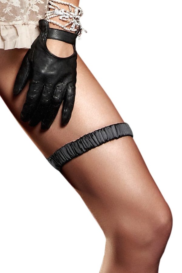 This black garter luxuriously and charmingly showcases itself with delicate ruffles. Its slender, puristical design is adorned by a button and a decorative loop. The flexible garter closely and extraordinarily caresses you. One size fits all; Color: Black. .