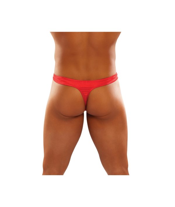 Satin bong thong features comfort fit pouch, classic thong back and tone on tone plush elastic trim.