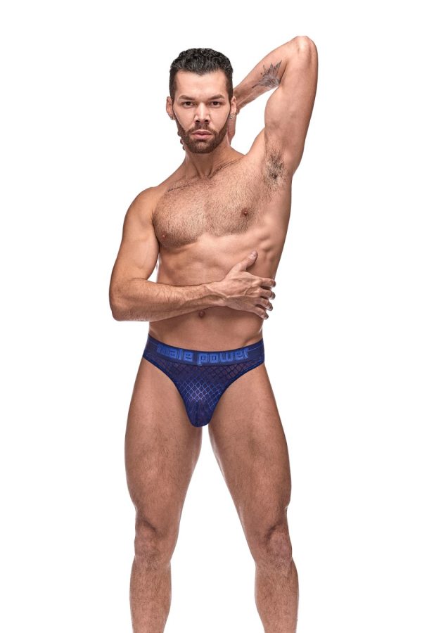 From the Diamond Mesh collection by Male Power, this style includes: A bong thong with full front coverage, classic one inch t-back with ultra plush branded two toned waistband. Sheer stretch mesh with a windowpane pattern, ultra soft and pliable Hand Wash Separately, Cold Water Line Dry, Do Not Bleach