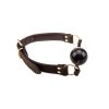 Control the screams, sighs and moans in style with this exquisite nubuck leather solid ball gag that will leave your sub’s mouth open wide and stuffed at the same time. Surprise them with this high quality, luxurious Bound product and they’ll beg to be gagged. Use the two O-rings to attach a leash or any other restraints to the gag leaving your sub even more powerless and vulnerable to your sexual exploits. With the fully adjustable buckle you can temper with the tightness of the gag, let your partner drool with anticipation and watch as their lips take all of the black silicone-rubber ball in. The brass detailing lends an equestrian look, further emphasizing the submission of the wearer, while the soft padding on the inner side of the strap ensures comfort for prolonged and advanced play. Treat your sub to the luxurious feel of real nubuck leather on their cheeks and let them say muffled thanks that they can be Bound by you. BOUND Padlock and Double Trigger Clip also available to use with this range. Add a professional look and feel to your BDSM scenes with our exquisite bondage range, BOUND. Check out and complete your BOUND collection with our exclusive nubuck leather wrist cuffs, ankle cuffs, collar, flogger, padded paddle, 4-way hogtie, leash, blindfold and riding crop.