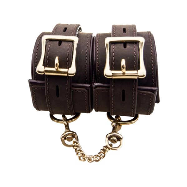 Soft and padded for comfort and safety but sturdy for advanced and lengthy bondage play, these cuffs will leave you really Bound. Establish a tone of exquisite pleasure and pain by restraining your partner with these exclusively high quality, durable nubuck leather wrist cuffs. Comes with a detachable double trigger hook chain connecting the D-rings on each cuff, further restricting your partner’s movement if desired. Treat your sub to these high quality bondage cuffs, they’ll beg to be tied up just to feel the luxurious nubuck leather tight around their wrists, smell the genuine, high quality leather and enjoy the inescapability of these premium physical restraints. Features: