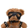 • Plush teddy bear dressed in faux leather bondage gear
