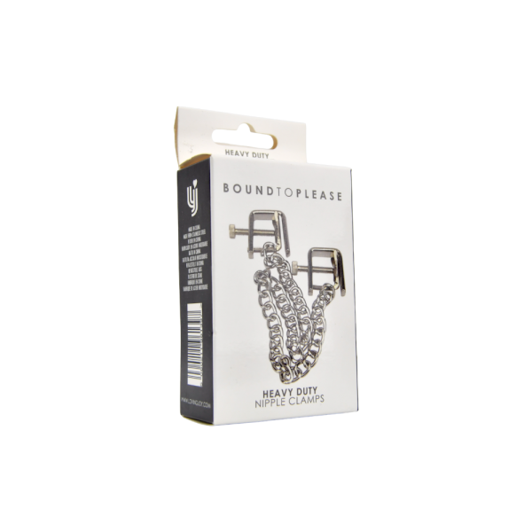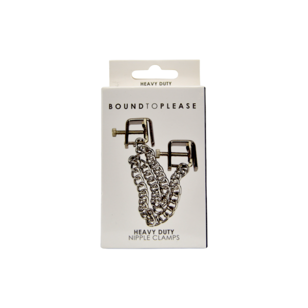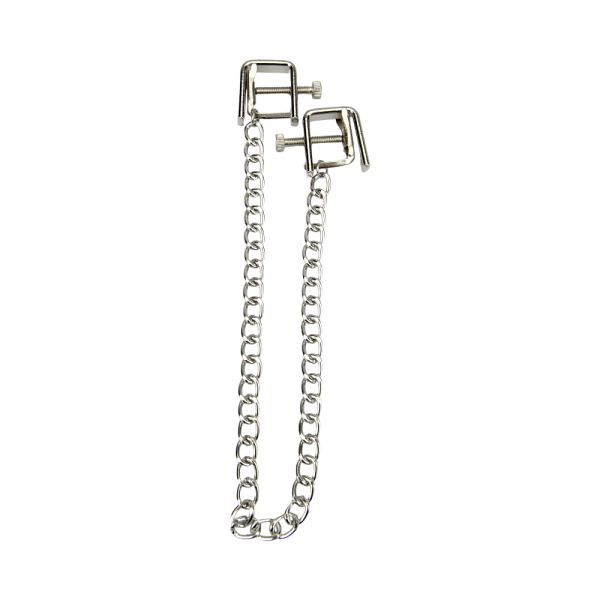 These quality, adjustable press clamps adjust fluidly and effortlessly allowing precision adjustments in intensity. Connected by a silver chain, the metal links also add sensory arousal when against skin. Chain length:33 cm
