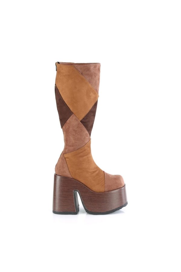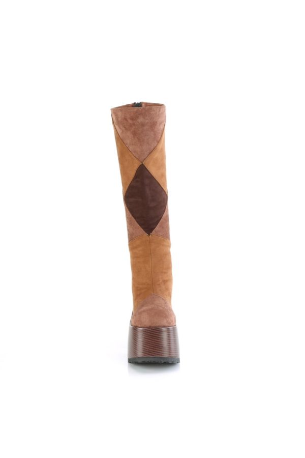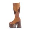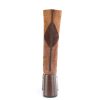 5″” (127mm) Block Heel, 3″” (75mm) Faux Wood Wrapped Platform Patchwood Knee High Boot, Inner Side Zip Closure