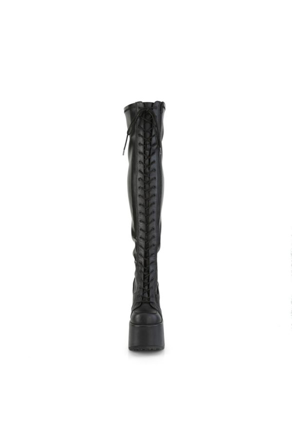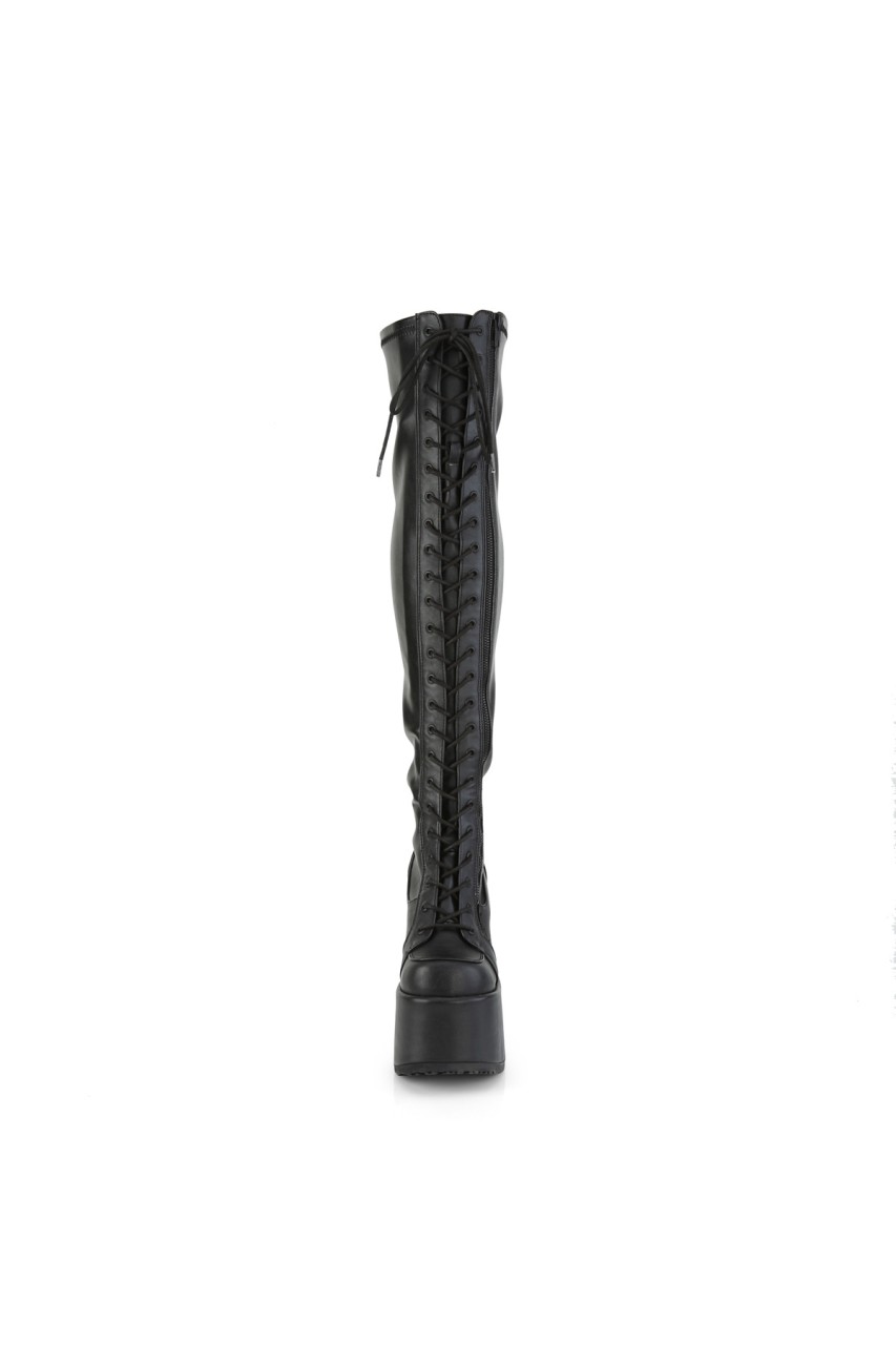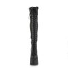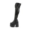 5″” Chunky Heel, 3″” Platform Lace-Up Stretch Thigh-High Boot, Full Length Outside Metal Zip Closure
