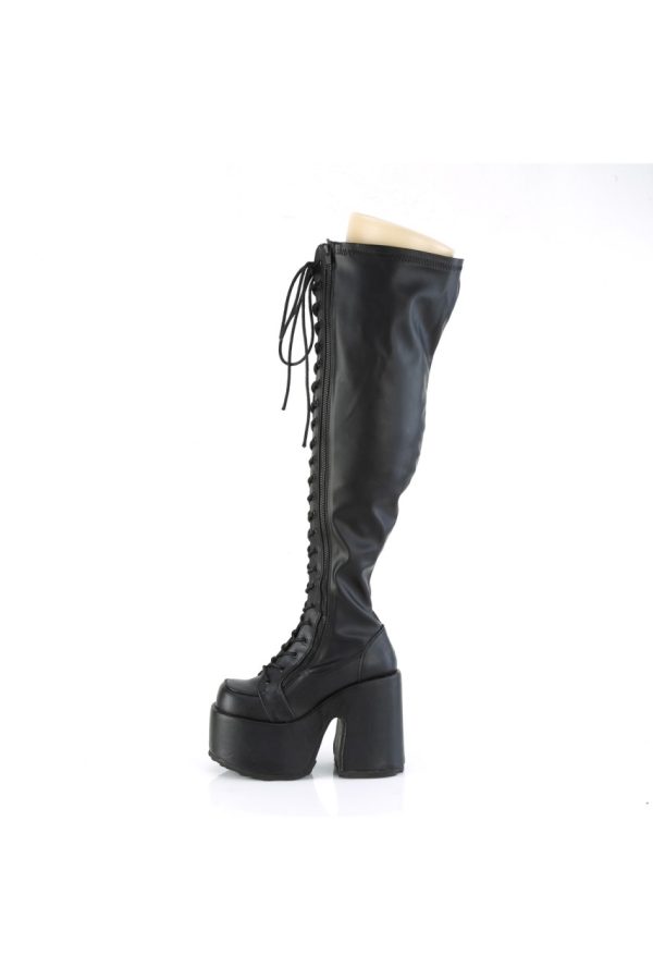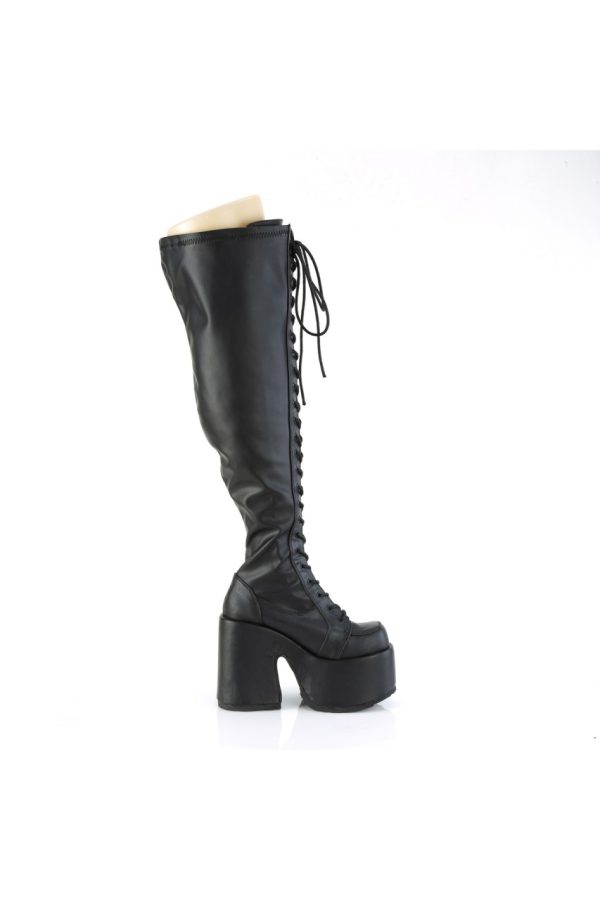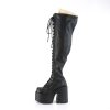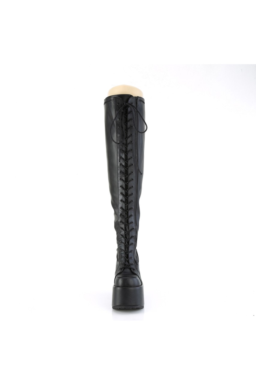 5″” (127mm) Chunky Heel, 3″” (76mm) Platform Lace-Up Stretch Wide Calf Thigh-High Boot, Full Length Outside Metal Zip Closure