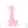 5″” (127mm) Chunky Heel, 3″” (75mm) Platform Lace-Up Knee High Boot Featuring Faux Fur Trim Detail, Full Inner Side Zip Closure