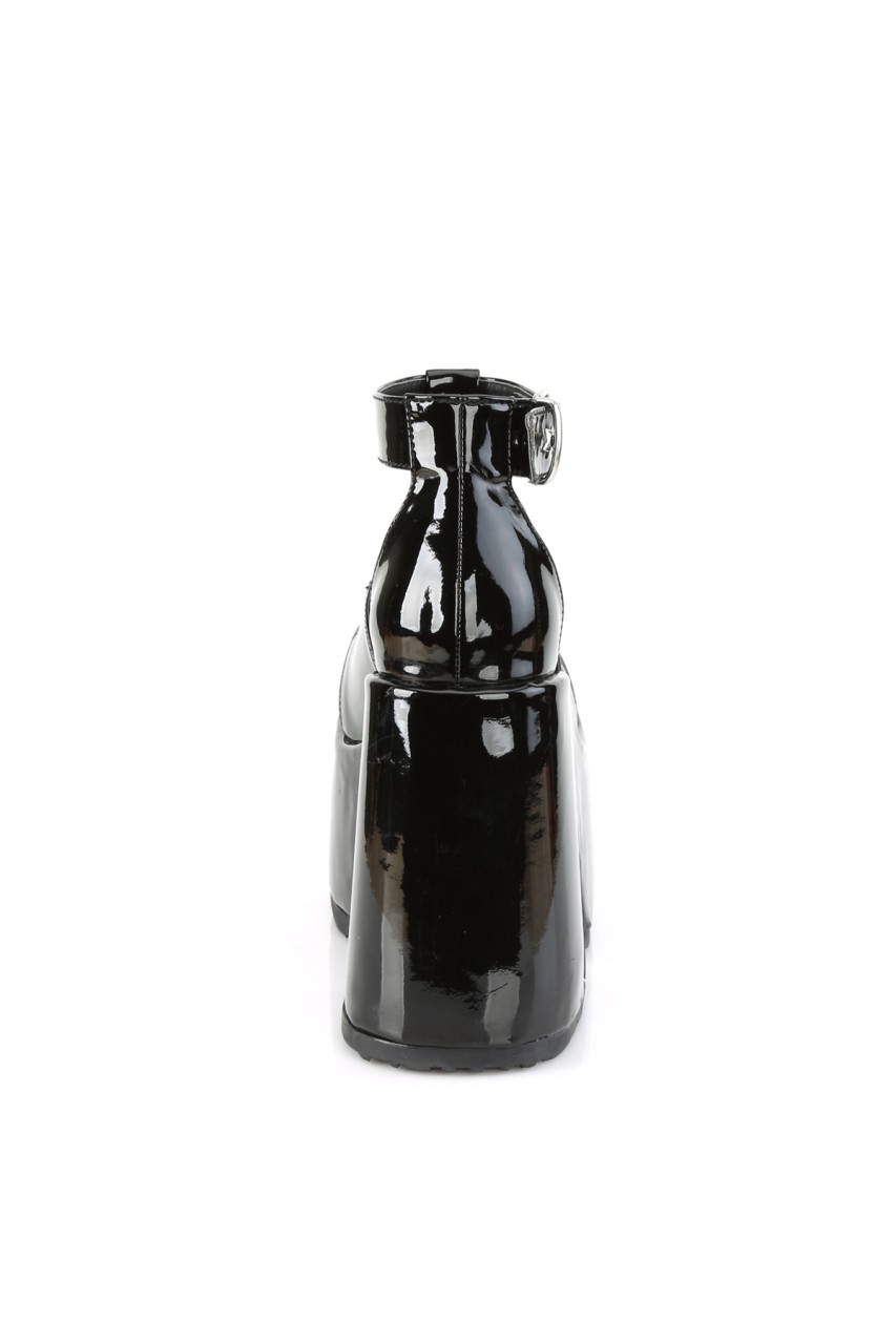 5″” (127mm) Chunky Heel, 3″” (76mm) Platform T-Strap Sandal Featuring Silver-Tone Star Shaped Eyelets at Straps