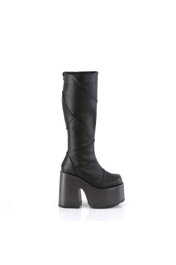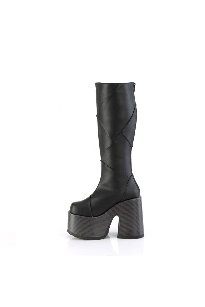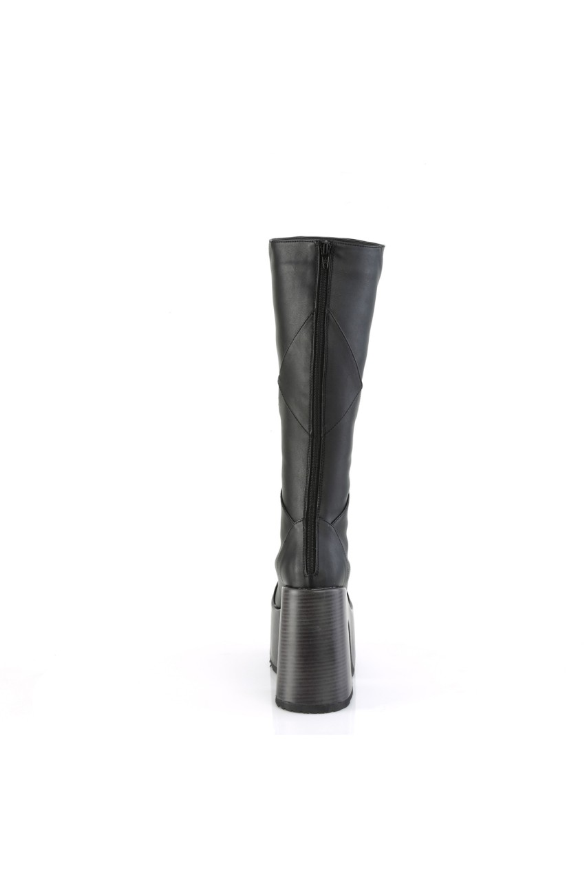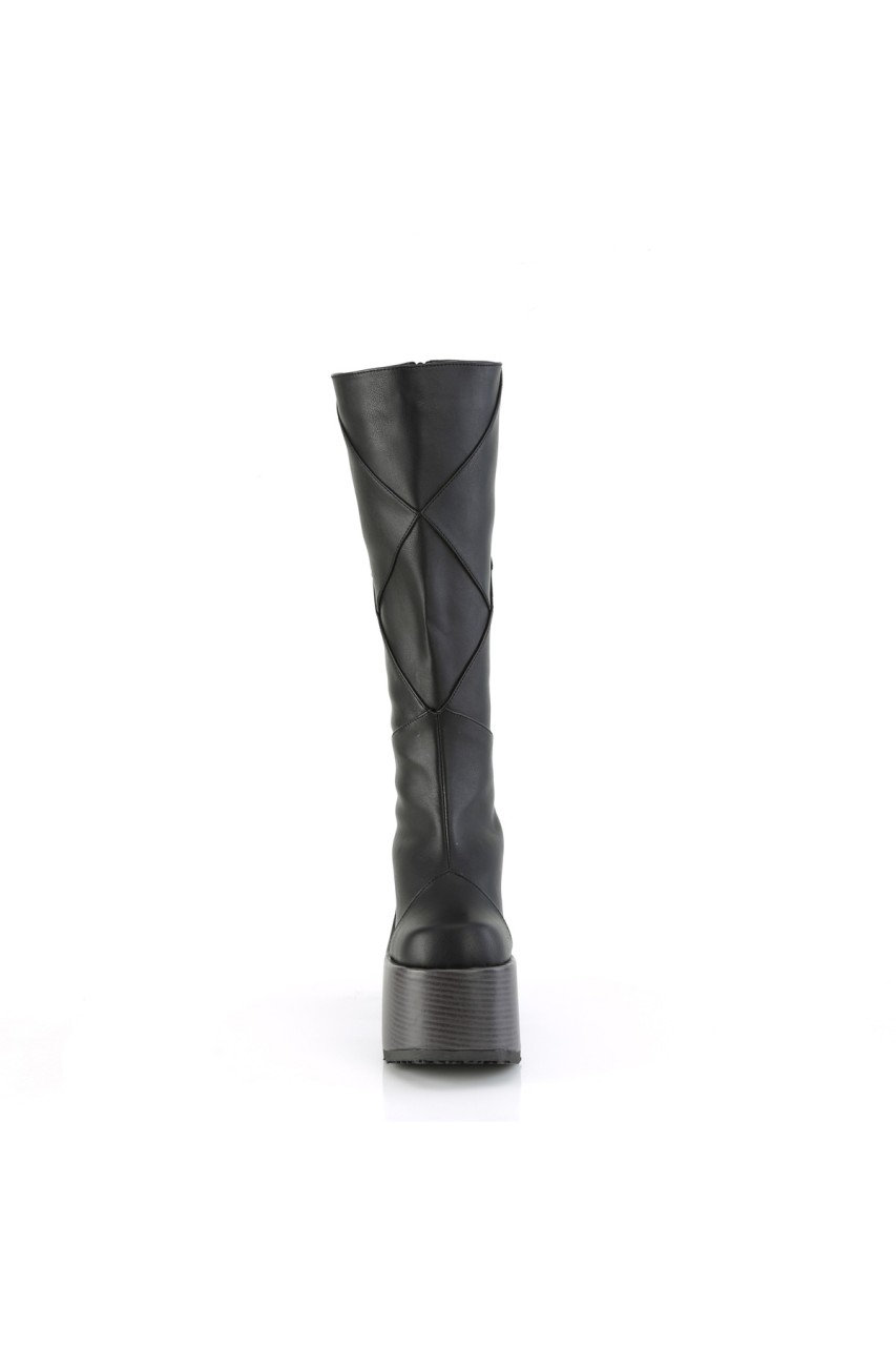 5″” (127mm) Block Heel, 3″” (75mm) Faux Wood Wrapped Platform Patchwood Knee High Boot, Inner Side Zip Closure