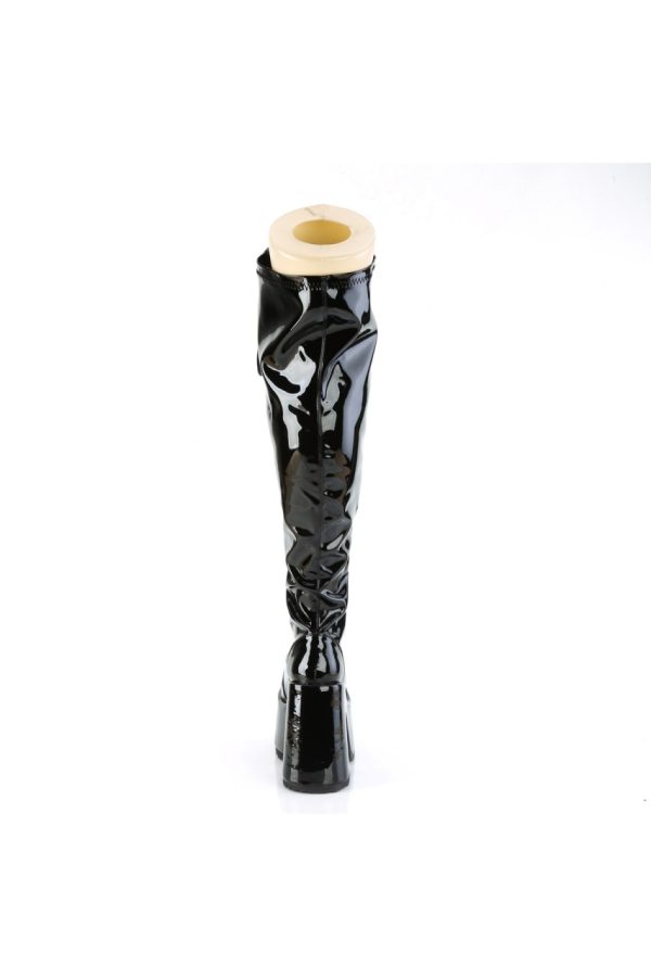 5″” (127mm) Chunky Heel, 3″” (76mm) Platform Lace-Up Stretch Wide Calf Thigh-High Boot, Full Length Outside Metal Zip Closure