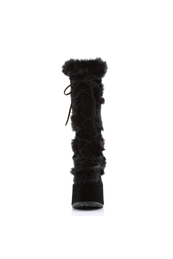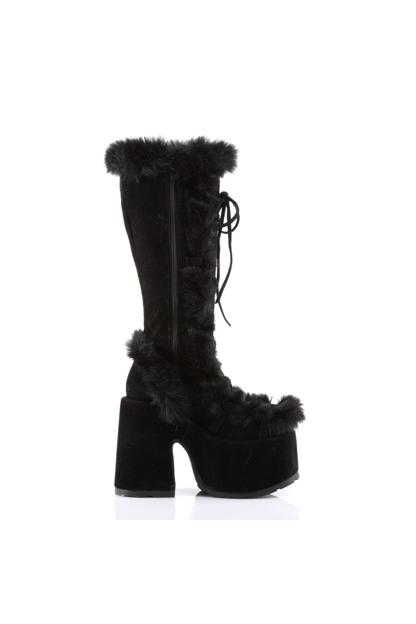 5″” (12.7cm) Platform Goth Punk Gogo Faux Fur Lining and Upper Detail Knee Boot, Full Inner Side Zip Closure