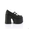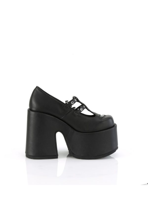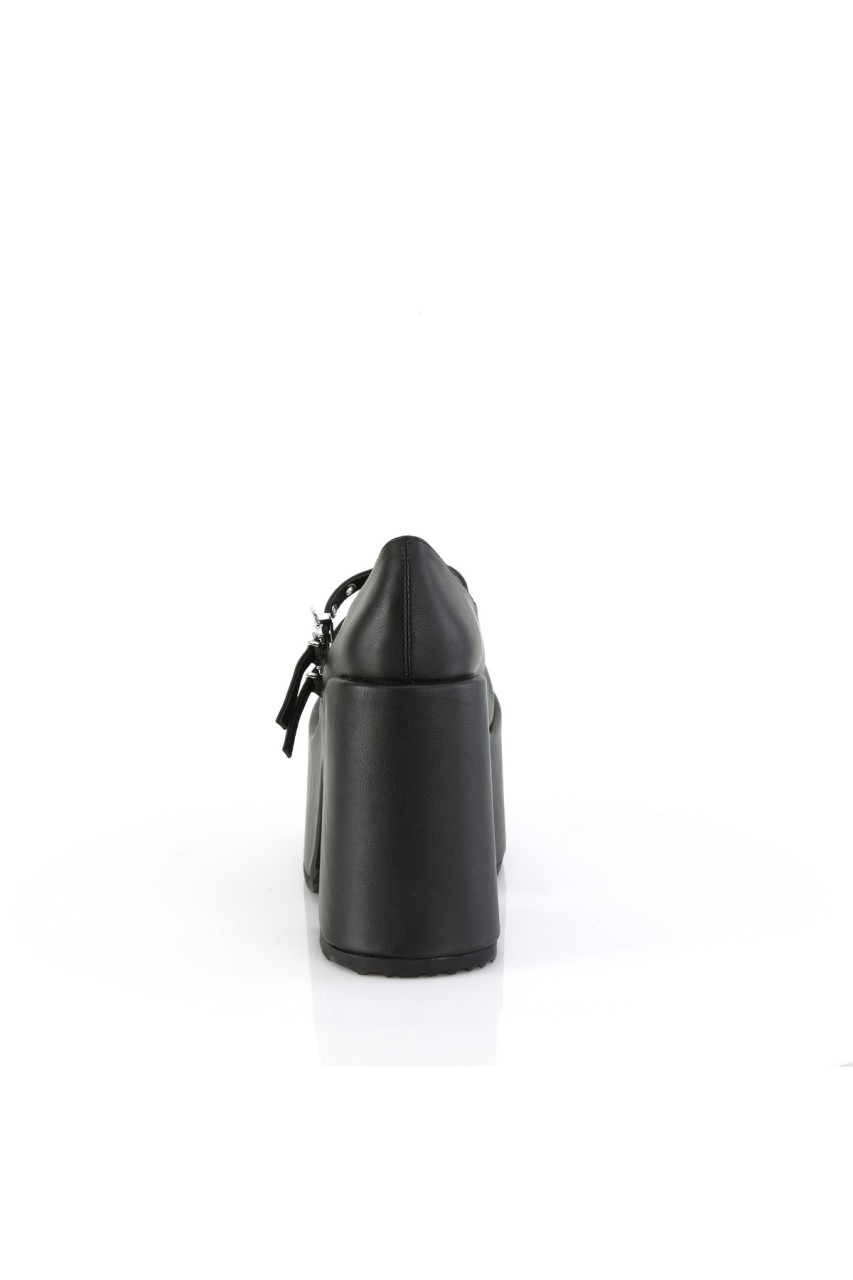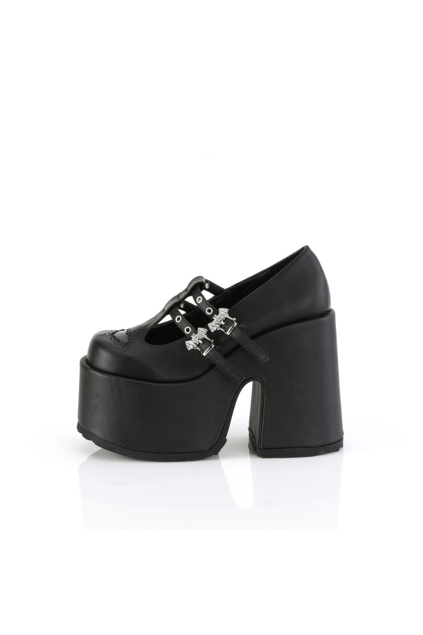 5″” (127mm) Chunky Heel, 3″” (76mm) Platform Double T-Strap Maryjane Featuring Silver-Tone Bat Buckles & Bat Cutout on Vamp