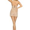 Celebrating 10 years of creating super sexy lingerie Provocative have surprised us with the jaw dropping Gold Lingerie collection which is absolutely fantastic and created with the finest high-end materials with the most exceptional quality. Introducing the Chic Attitude chemise in nude (quite the flattering colour) which is fashioned with exceptional floral lace. Included are triangle shaped cups with intriguing lace detailing lined with nude mesh. Underneath is a sumptuous elasticated band zig-zag stitched to perfection. Between the middle of the cups sits a romantic satin ribbon with black eyelash lace sewn on top. Includes thin adjustable shoulder straps. At the back of the chemise is small open hole detailing finished with black satin ribbons. Complete with a matching strappy thong attached to the chemise. Chic Attitude chemise comes packaged in a slim light beige branded Gold Lingerie box and an outer sleeve showcasing the product imagery. Also available in black (code PR5068).