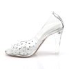 4″” (105 mm) Lucite Heel Peep Toe Pump, Featuring Rhinestones Embellished on Front Vamp