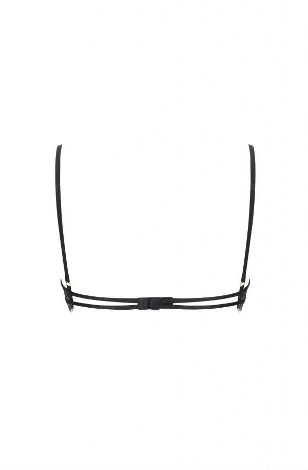 Delicate lace underwired bra decorated with eyelash lace. Three sectional cup to provide comfort and support. Lovely adjustable straps with gold coloured metal fittings and adjustable fastener with three position. Gorgeous!