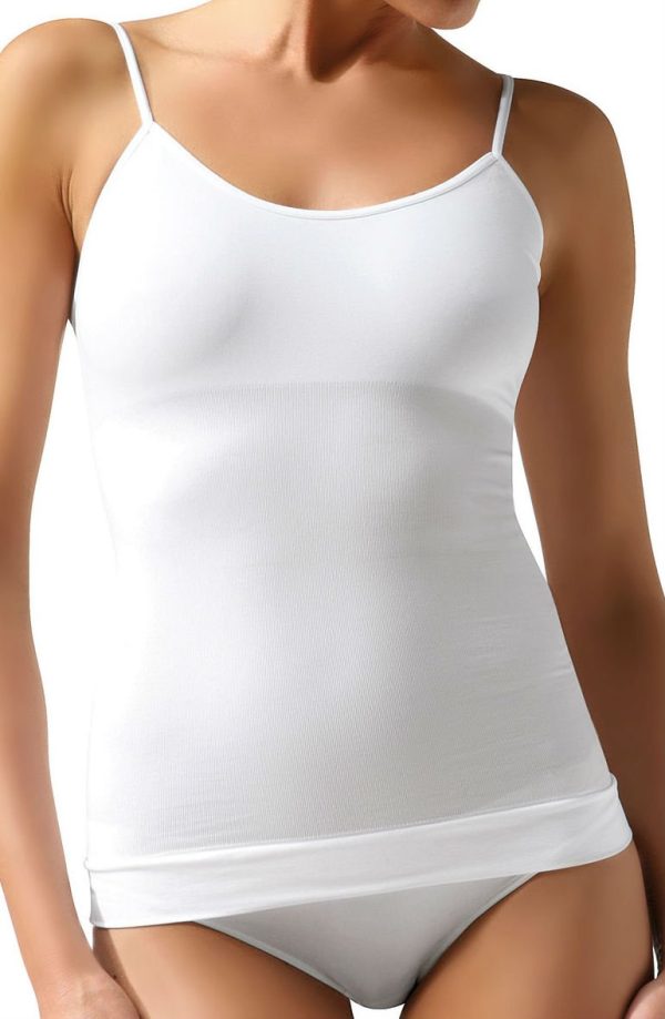 Shaping camisole with spaghetti straps and moderate compression providing a medium level of support. Shapes the waist smooth the tummy and supports the back. Item comes packaged in a Control Body box.
