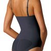 Body with fine strap and strong compression. Shapes and enhances the silhouette. Adjustable strap and hook & eye anti-bacterial gusset. Seamless invisible under clothes. Shapes the waist lifts the bottom smooths the tummy supports the bust and supports the back.