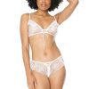 A very pretty short decorated with gorgeous lace and embroidery. The front has beautiful black mesh with delicate cream embroidery finished with cream scalloped lace at the top and bottom edges. The middle has an under layer of black soft and shiny fabric to provide decency and matches with the back of the short. The back is plain with the same soft and shiny fabric which is incredibly soft to touch and provides a slight stretch for comfort. The waistband is elasticated and finished with a complementary zig-zag stitch great for ease of fit. The sides of the short are also elasticated with black lace up detailing making this a really lovely stand out feature and also helps with the fit. And as another feature there’s a pretty little black bow at the top the short. Matching push-up bra is also available to order separately on the website. Also available in white which is perfect for bridal wear. Ginewra arrives packaged in her own Roza box with elegant branded tissue paper inside.