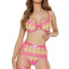 Natali is a beautiful floral embroidered bra. Lovely lace up detail to the centre of the bust. Matching brief thong and suspender belt sold separately. Available in pink (black version also available). Item arrives packaged in its own Roza box.