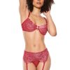 Natali is a beautiful floral embroidered bra. Lovely lace up detail to the centre of the bust. Matching brief thong and suspender belt sold separately. Available in pink (black version also available). Item arrives packaged in its own Roza box.