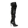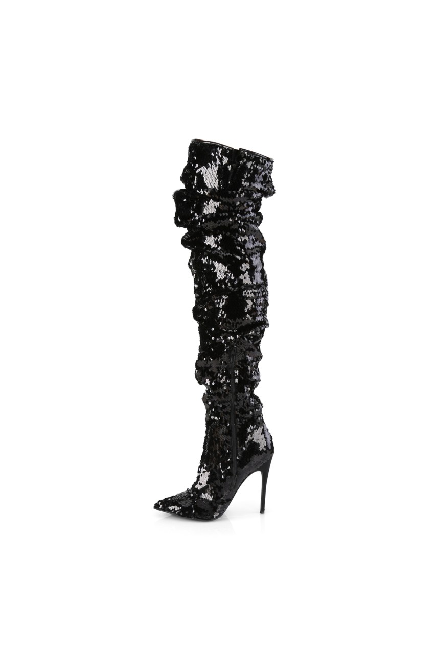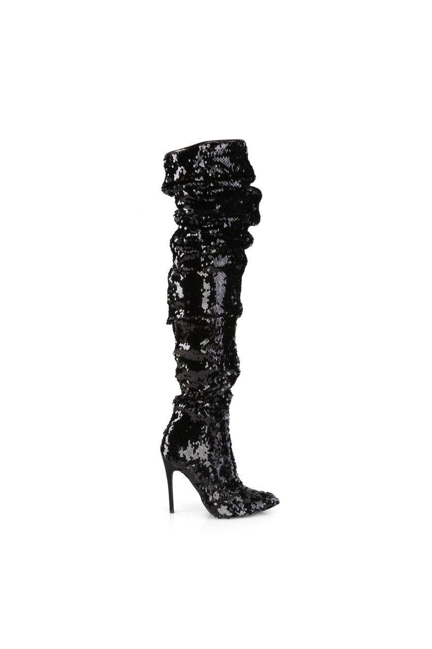 5″” (127mm) Heel Over-the-Knee Boot Featuring Ruched Slouchy Sequins Body, 1/3 Inner Side Zip Closure