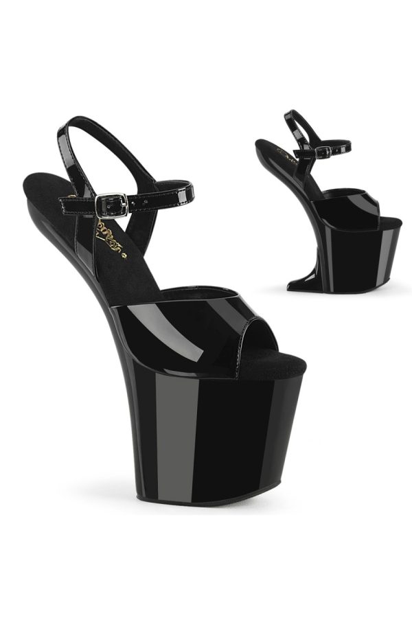 8″” (200mm) Heelless, 3″” (76mm) Platform Ankle Strap Sandal. Can be Transformed into a Mini Wedge Sandal with the Included Heel