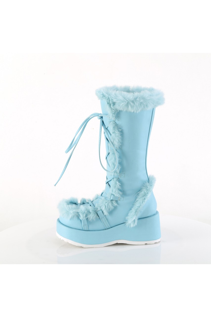 2 3/4″” (70mm) Platform Lace-Up Mid-Calf Boot Featuring Faux Fur Trim Detail, Full Inner Side Zip Closure