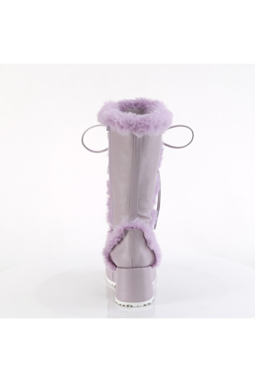 2 3/4″” (70mm) Platform Lace-Up Mid-Calf Boot Featuring Faux Fur Trim Detail, Full Inner Side Zip Closure