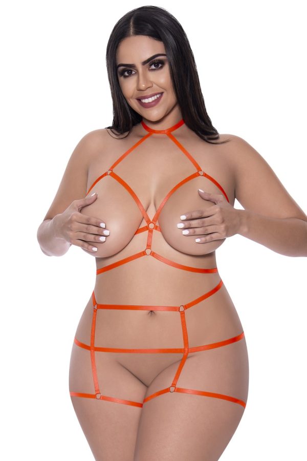 From the Exposed by Magic Silk Collection, this style includes: A cupless bra featuring O-ring details, adjustable neck straps with metal sliders, a hook & loop closure at the back, and a matching cage style short with O-ring details. Plush satin elastic straps with a slight sheen. Hand wash, cold. No Bleach. Dry flat. 90% Nylon, 10% Spandex