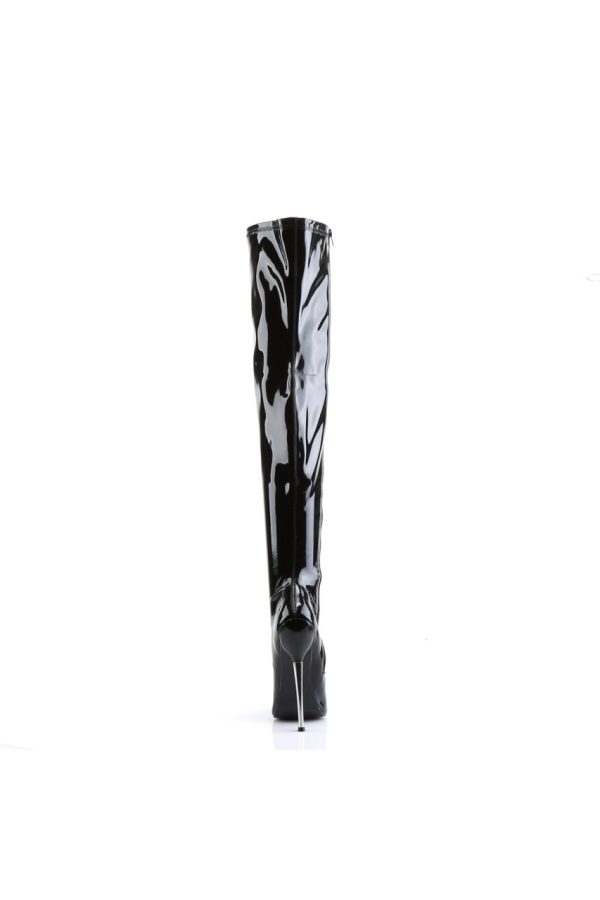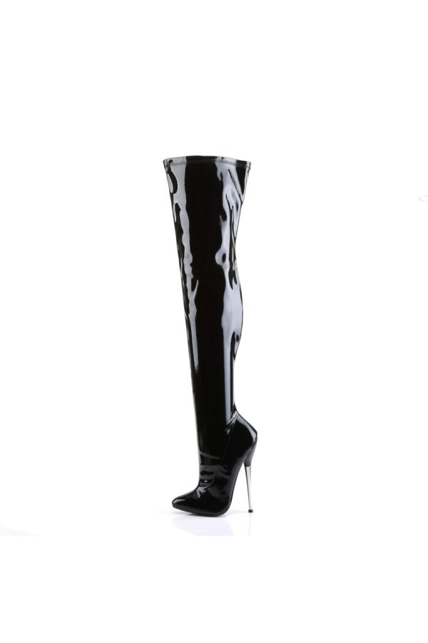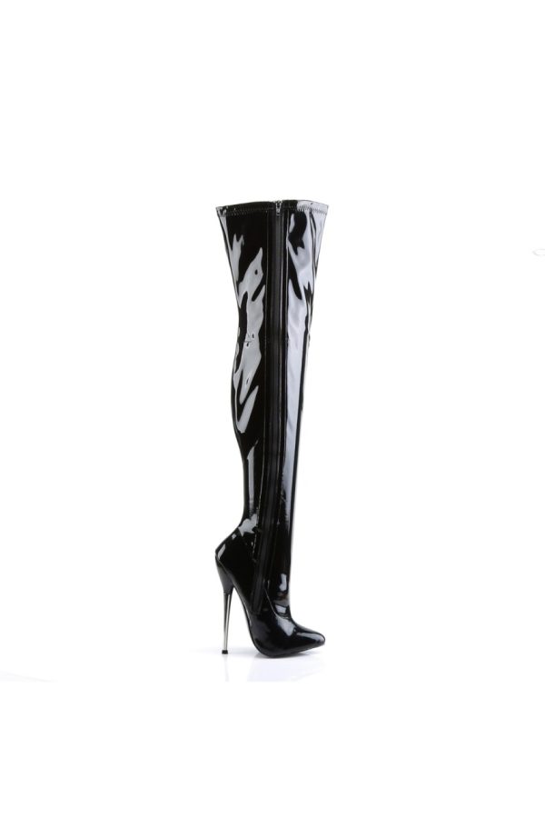 6 1/4″” (15.9cm) Solid Brass Heel Plain Stretch Thigh Boot, Full Inner Side Zip Closure