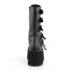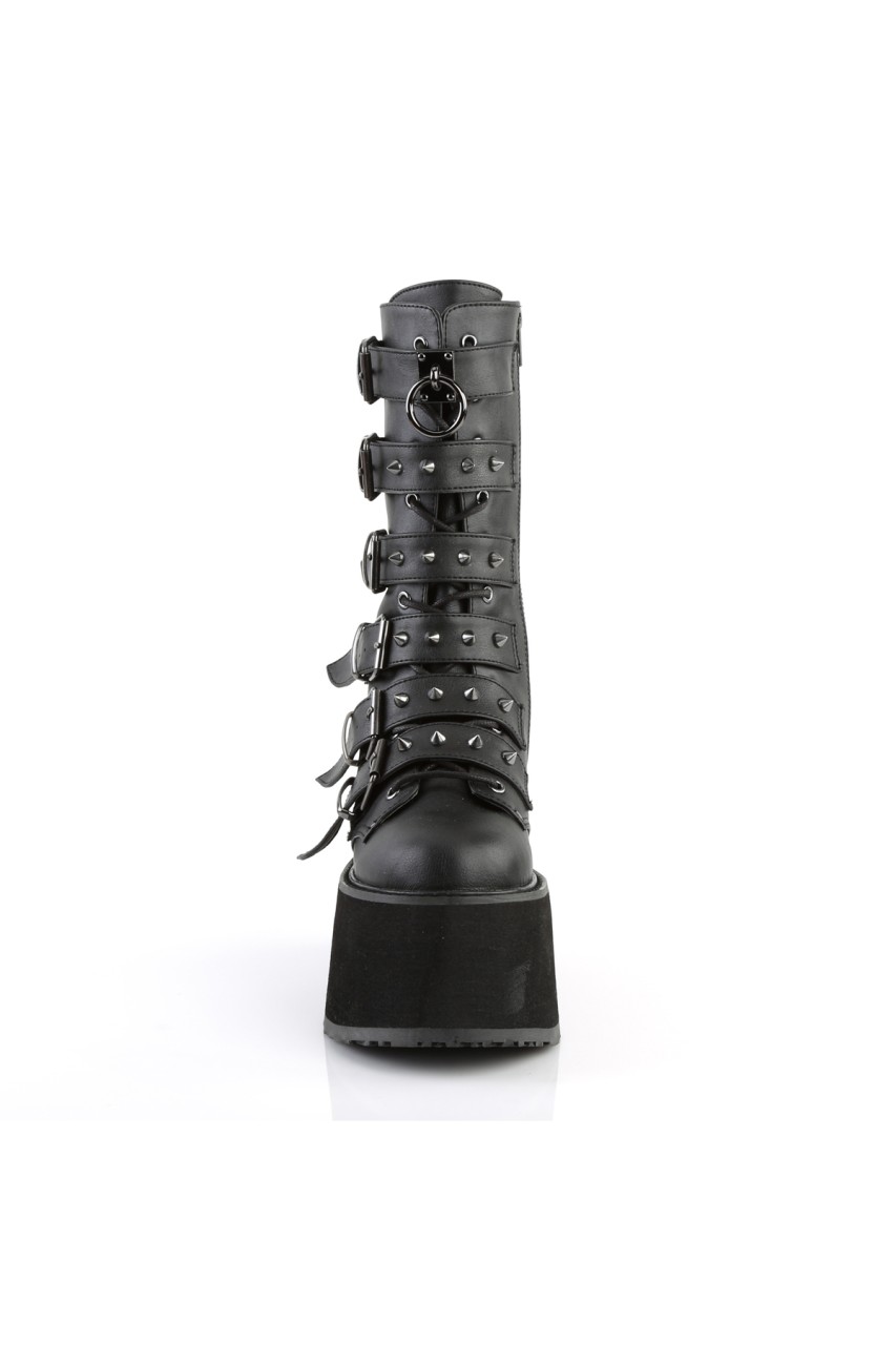 3 1/2″” (90mm) Platform Lace-Up Front Mid-Calf Boot Featuring 6 Cone-Studded Buckle Straps, Inner Side Metal Zip Closure