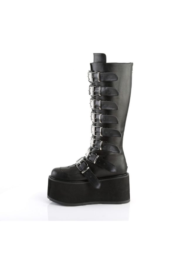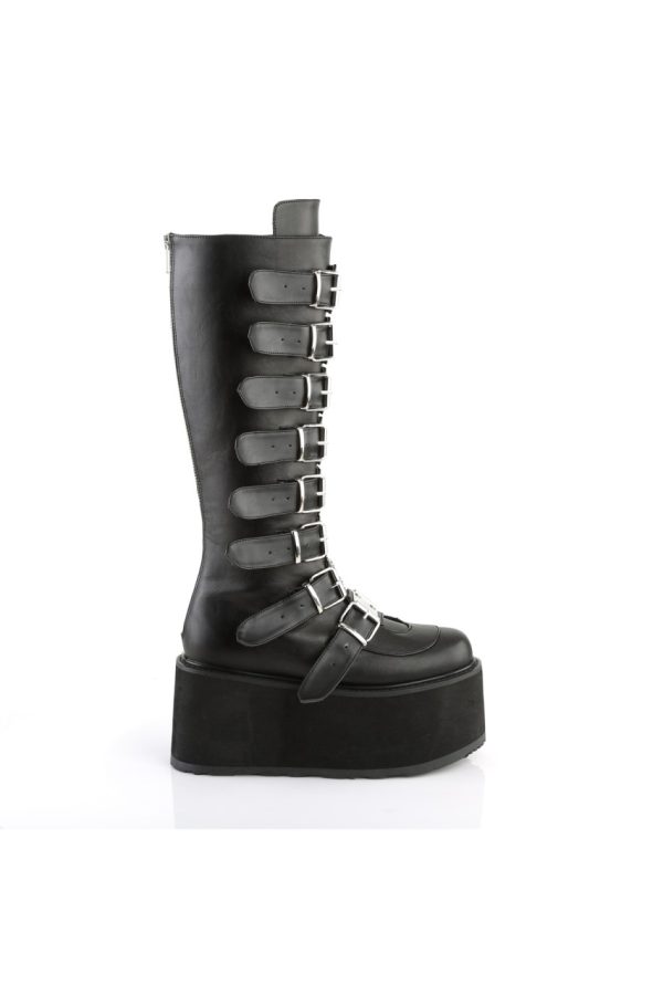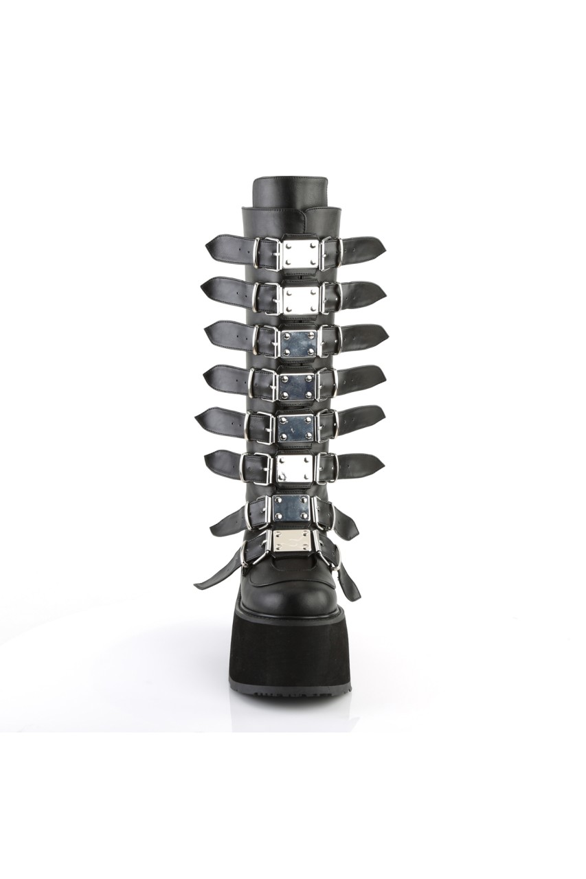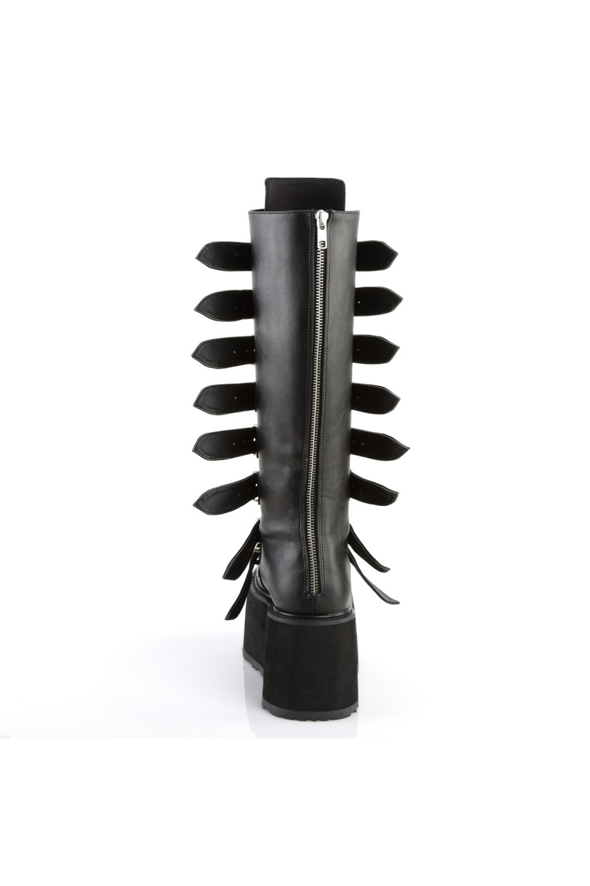 3 1/2″” (8.9cm) Platform Buckled Strap Knee High Boot with Chrome Plated Hardware on Straps, Full Back Zip Closure
