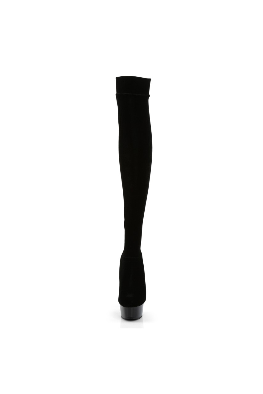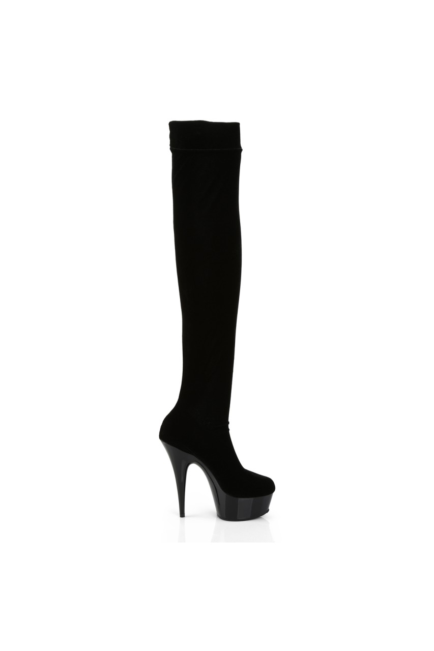 6″” (15.2cm) Stiletto Heel, 1 3/4″” (4.5cm) Platform Stretch Thigh High Boot, No Zip Closure