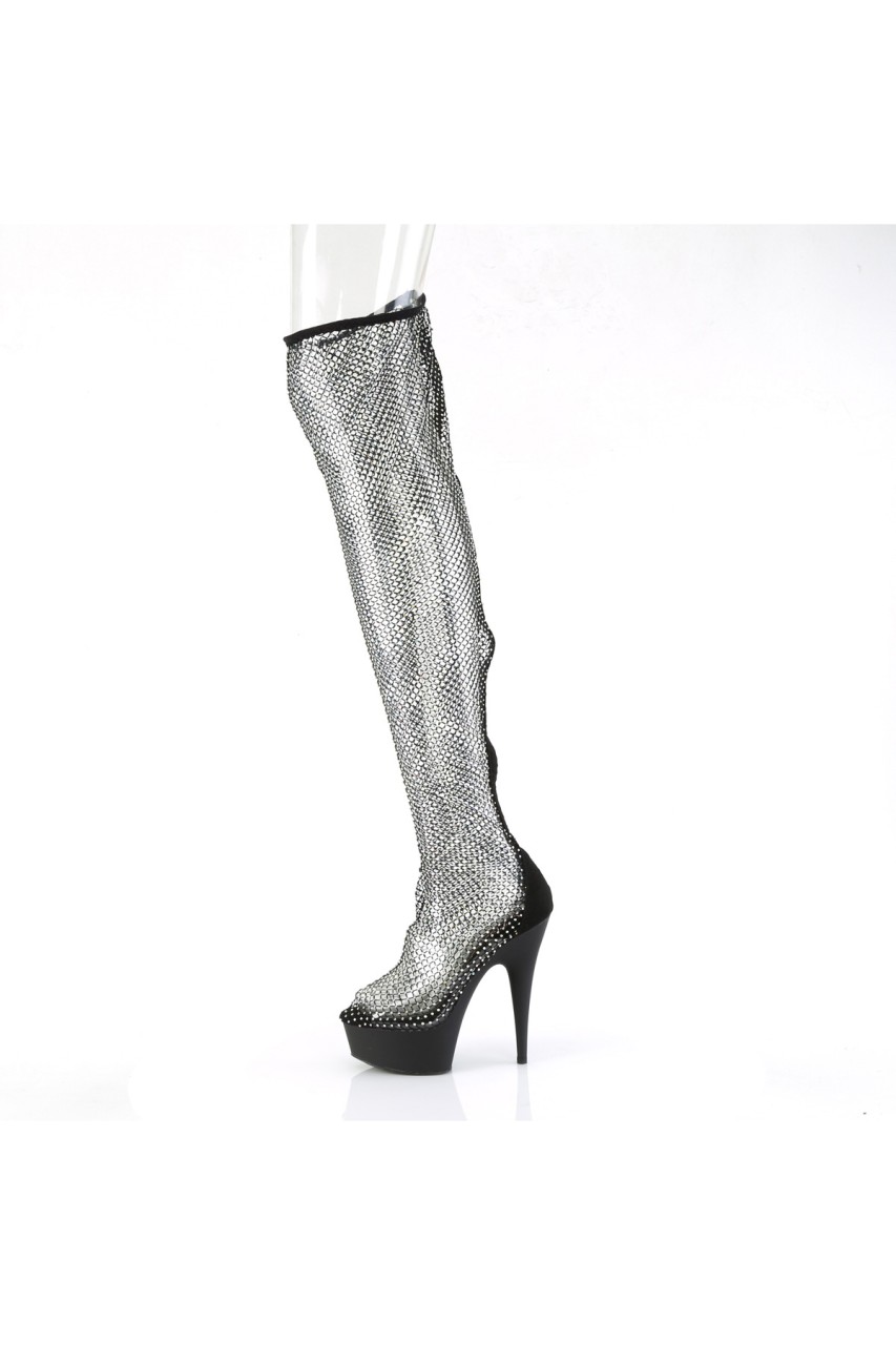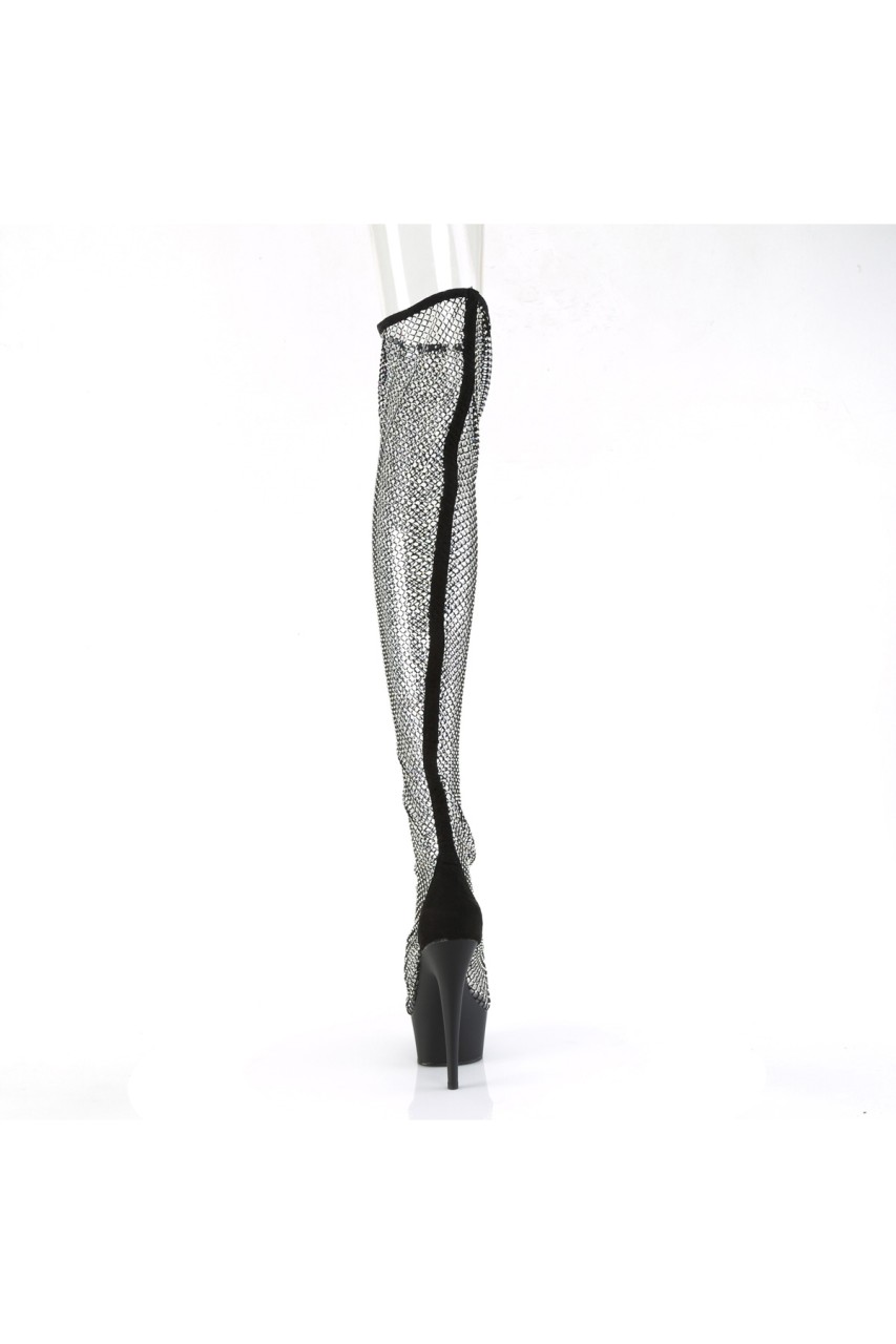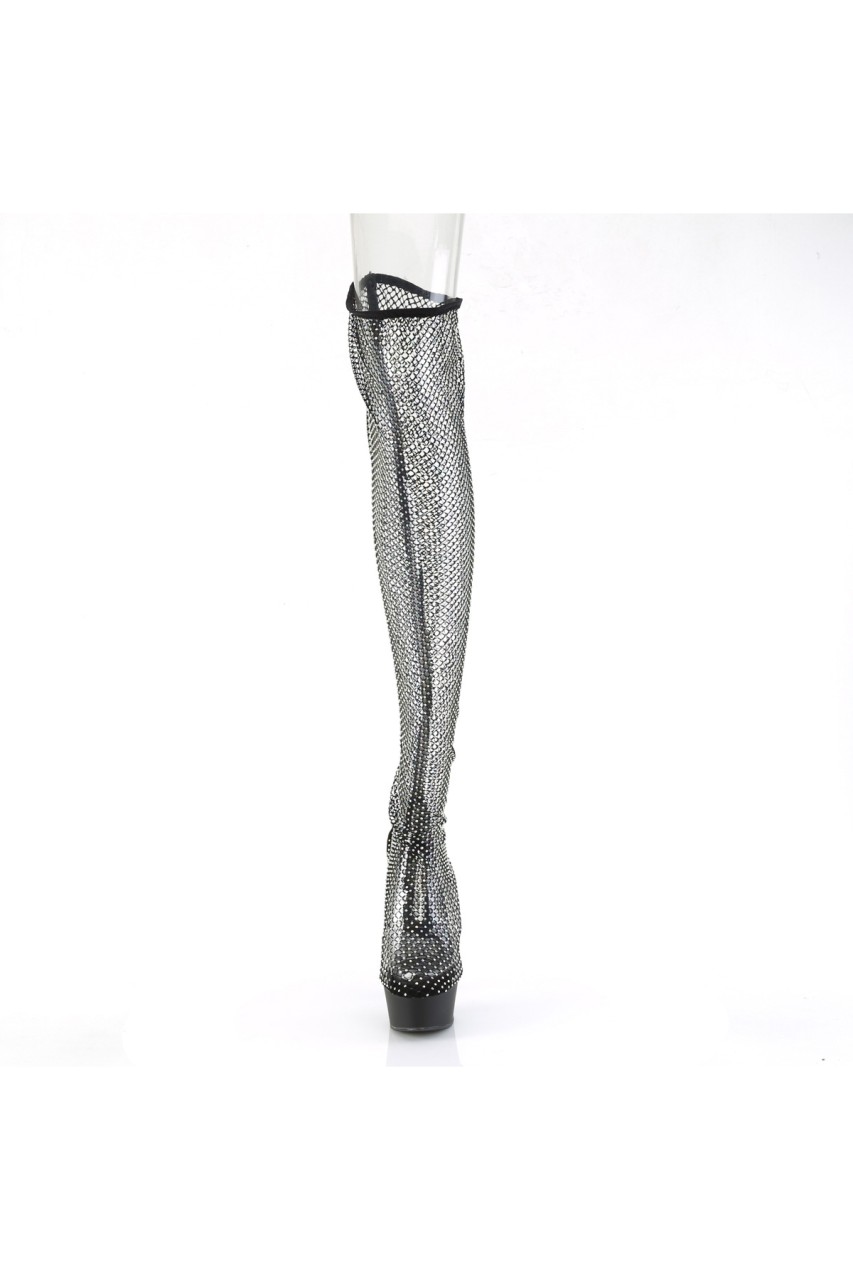 6″” (152mm) Heel, 1 3/4″” (45mm) Platform Pull-On Thigh High Boot Featuring Stretchable AB Rhinestone Mesh Fabric Upper