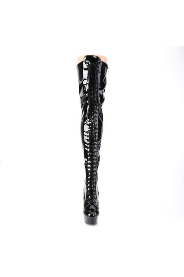 6″” (15.2cm) Stiletto Heel, 1 3/4″” (4.5cm) Platform Lace-Up Stretch Thigh High Boot, Full Inner Side Zip Closure