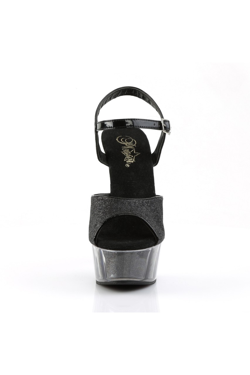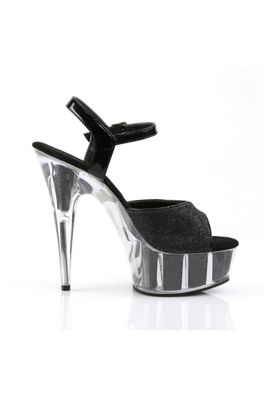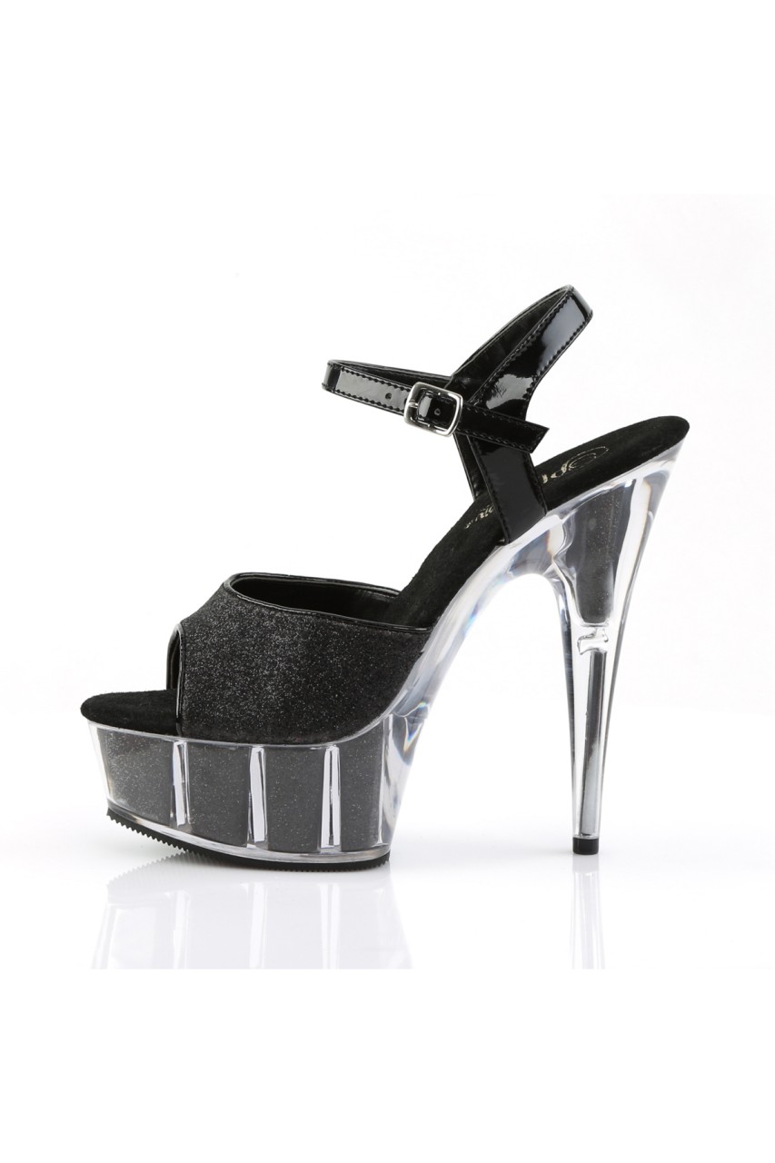6″” (15.2cm) Stiletto Heel, 1 3/4″” (4.5cm) Platform Ankle Strap Sandal Featuring Mini Glitter Upper and Filled Bottom