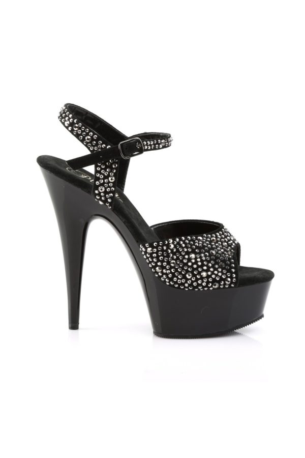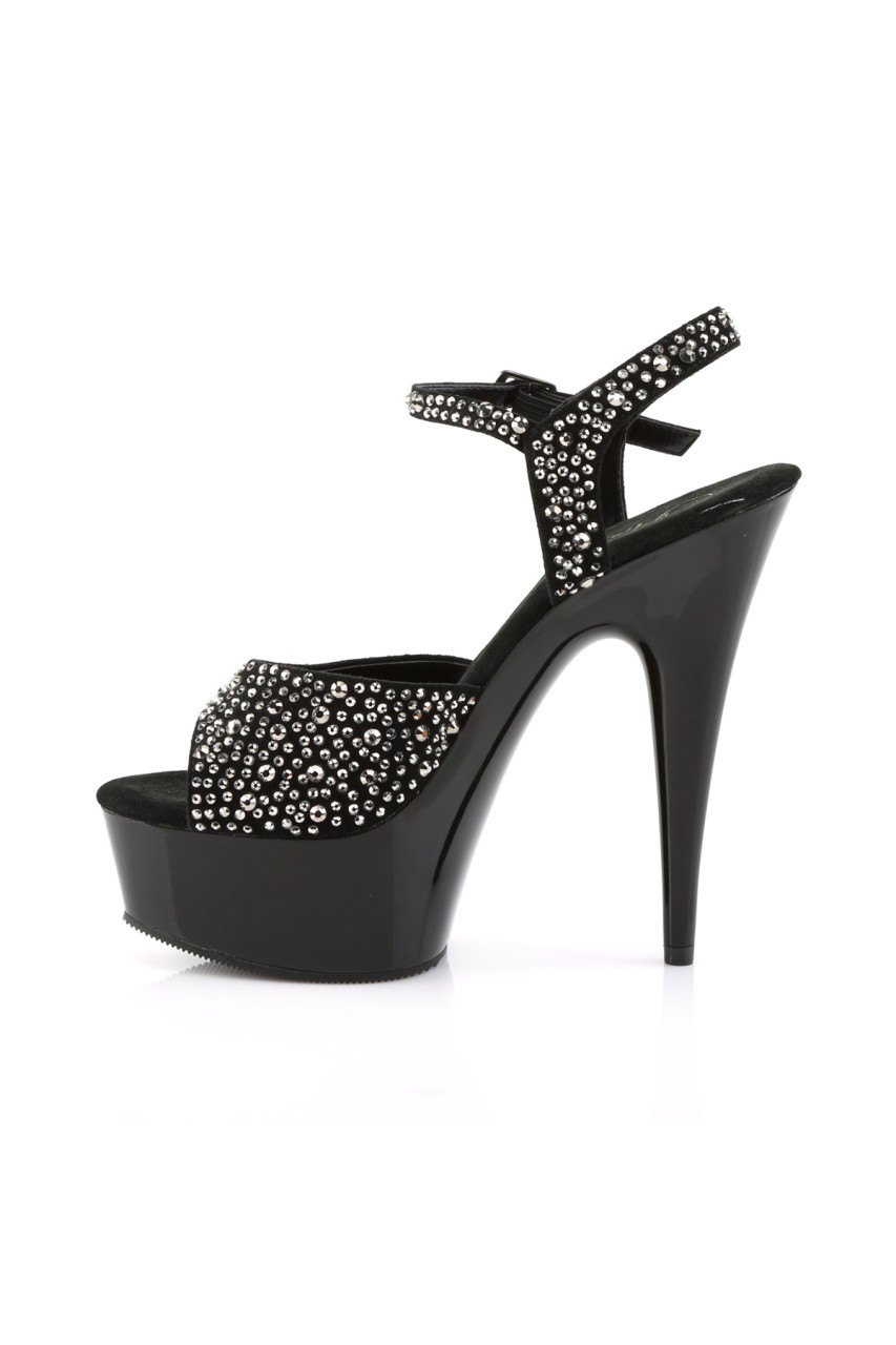 6″” (15.2cm) Stiletto Heel, 1 3/4″” (4.5cm) Platform Peep Toe Ankle Strap Sandal Featuring Rhinestone Upper